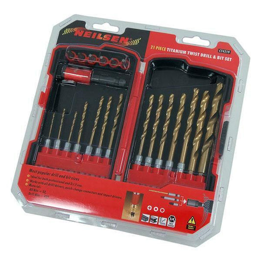 21pc Titanium Twist 1/4" Hex Shank Boxed Drill/ Bit Set