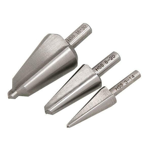 3pc HSS Cone Cutter Taper Drill Set. 3-14mm, 8-20mm, 16-30mm