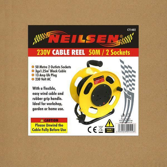 Cable Reel - 50 M / 2 Socket 240 V Long