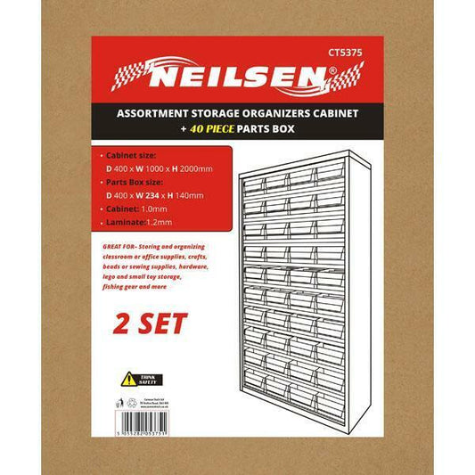 2x 2m Metal Storage Cabinets with 40 organizing trays
